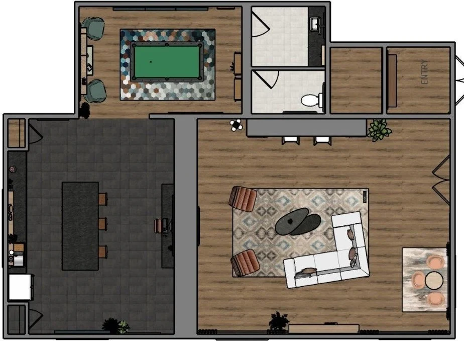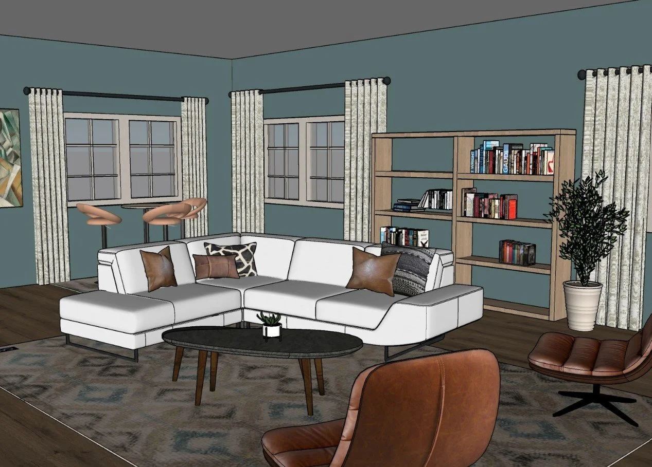 A group project of a fire themed library, shown through SketchUp models and Photoshop renderings.